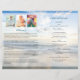 Picturesque blue beach letter size funeral program for men, with a beautiful photo collage. Includes space for an obituary, order of service, poems and more to create a fitting tribute for your loved one. All text is easy to edit and fully customizable.