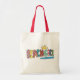These bags were super cute (I purchased 3). The material is more of a canvas look & feel. The colour of the bag is slightly off white, but the letters look exactly as pictured. I took 3 photos in different lighting. Would recommend! I liked how there was an option to choose the font and colour of the name. The words are legible and the colours are exactly as pictured.
