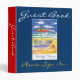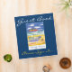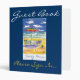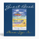 An original watercolor painting by Anne Ormsby of an ocean scene adorns this guest book.