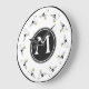 Wall clock features an original illustration of a black-and-white seagull (or pigeon!) Just personalize with your initial.