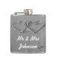 Beach hearts Mr and Mrs wedding drink flask. Cute romantic photo of drawn hearts on the beach. Fun gift idea for newly weds bride and groom / married couple.