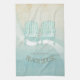 This kitchen towel in the soft colours of sea and sand allows you to easily add your own name and text using the provided template. The image of two Adirondack chairs on a distressed, watercolor background is highlighted by a wave accent in aqua and white. Search ID623 to see coordinating seaside elements and additional products with this design.