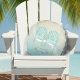 This round throw pillow in the soft colours of sea and sand allows you to easily add your own name and text using the provided template. The image of two Adirondack chairs on a distressed, watercolor background is highlighted by a wave accent in aqua and white. Search ID623 to see coordinating seaside elements and additional products with this design.