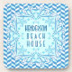 These pretty, personalized beach house drink coasters have a blue-and-white herringbone pattern. The bold shell motif has a classic Art Deco stylized look, complete with starfish and a faint white anchor in the middle. In a vintage 1920's font, easily add your family name. Even the words "Beach House" are customizable, in case you want to add "Lake House," "Summer Home" or any other words you would like.