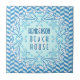 This pretty, personalized beach house decorative tile has a blue-and-white herringbone pattern. The bold shell motif has a classic Art Deco stylized look, complete with starfish and a faint white anchor in the middle. In a vintage 1920's font, easily add your family name. Even the words "Beach House" are customizable, in case you want to add "Lake House," "Summer Home" or any other words you would like.