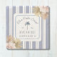 Introducing our Beach House Blue Stripes Coastal Boho Farmhouse Square Stone Coaster. Featuring watercolor illustration of orchid and dried palm leaves with navy blue strips as background. Suitable for Rental vacation beach house or coastal cottage.