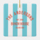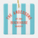 Beach House Custom Name Blue Cabana Stripe Ceramic Ornament