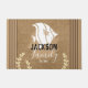 Rustic Burlap background design. Tropical Fish stamp solid graphic. Custom family name in bold sans serif font and chic script family typography. All text is adjustable. Beautiful design for beach house, vacation home, boat, or nautical themed home decor.