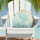 This round throw pillow in the soft colours of sea and sand allows you to easily add your own name and text using the provided template. The simple boat helm image on a distressed, watercolor background is highlighted by a wave accent in aqua and white. Search ID623 to see coordinating seaside elements and additional products with this design.
