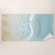 This beach towel design in the soft colours of sea and sand allows you to easily add your own name and text using the provided template. The simple starfish image on a distressed, watercolor background is highlighted by a wave accent in aqua and white. If you aren't fortunate enough to have a beach house or cottage, just change the text on this fun design to whatever suits your needs. Search ID623 to see coordinating seaside elements and additional products with this design.