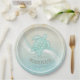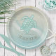 This paper plate in the soft colours of sea and sand allows you to easily add your own name and text using the provided template. The simple turtle image on a distressed, watercolor background is highlighted by an optional white frame and a wave accent in aqua and white. Search ID623 to see coordinating seaside elements and additional products with this design.