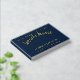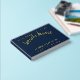"Bienvenue dans notre maison de plage" texte avec espace pour vos mots personnalisés, plus "livre d'or". Design inclut des pagaies de canoë, ancres et étoiles de mer - arrière - plan bleu marine foncé faux burlap avec texte et images de feuille d'or réel.