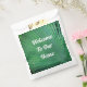 Welcome your house guests with these customized favour bags featuring a photo of a green palm leaf. All text can easily be customized to suit your needs.
