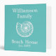 Use this fabulous binder featuring a large white shell and white print on a turquoise background to share everything about your home, your area restaurants, churches, markets, even doctors. Having everything conveniently at their fingertips will be helpful for anyone visiting your home. This binder can easily be made your own by typing in your family name and the year you were established.