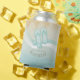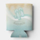 This can cooler in the soft colours of sea and sand allows you to easily add your own name and text using the provided template. The simple sunglasses and flip flops image on a distressed, watercolor background is highlighted by a wave accent in aqua and white. Search ID623 to see coordinating seaside elements and additional products with this design.
