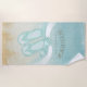 This beach towel design in the soft colours of sea and sand allows you to easily add your own name and text using the provided template. The simple sunglasses and flip flops image on a distressed, watercolor background is highlighted by a wave accent in aqua and white. If you aren't fortunate enough to have a beach house or cottage, just change the text on this fun design to whatever suits your needs. Search ID623 to see coordinating seaside elements and additional products with this design.