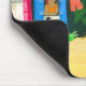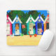 A bright and cheerful mousepad, decorated with a handpainted paper collage of beach huts.