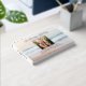 This real foil guest book serves as a thoughtful memorial service or funeral guest book, featuring a serene ocean scene with the words "In Loving Memory" on the front cover. The square photo template allows you to add a cherished photo of your loved one, while the front and spine can be personalized with their name and birth and death dates in elegant rose gold, gold, or silver foil. This keepsake is perfect for honouring someone who loved the beach. The back cover offers space for a custom quote or tribute to further commemorate their life. This guest book provides a beautiful way to collect memories and honour the life of your loved one.