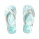 Kids flip flops are shown in white with a pretty blue coloured beach shells print.
