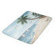 Add a calming tropical touch to your home bathroom decor with this custom beach landscape watercolor bath mat. Bathmat has sailboats in the pretty blue ocean, seagulls flying overhead, sand, and palm trees. Add a last name or other text (or remove, per your preference.)