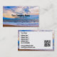 Looking out over the sea from the beach to the horizon under a bright sunset sky. Clean modern custom Business Cards. Add your own text and QR Code (or delete if not needed). Customise for more options (fonts colours, positions, extra text)