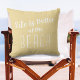 Cute wavy nautical design features "Life is Better at the Beach" in fun white lettering & script. The design is placed on a colourful yellow background derived from a colour palette inspired by a colour of the suns reflection on the sky at a tropical Florida panhandle beach sunset. Colour of background and font colours are easily changed in design tool section. The back is solid colour. Perfect home decor for that vacation house at the beach!