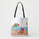 Heading to the beach or pool this summer? Carry all your necessities in this fun tote. A scene of a beach with an umbrella, chair, sand, sun and fun will get you in the mood.