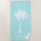Beach Lover Palm Tree Blue White Beach Towel