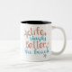 Starfish and quote "Life Is Simply Better At The Beach" coffee mug. Perfect for the beach, lake or cottage home. Add to the decor at beach and vacation rental properties. Or, just perfect for all of those who just love the beach. Design by Jenn's Emporium.