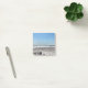 Post it Notes feathering a blue sky, ocean and sandy beach.