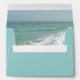 Ocean Shoreline Envelopes, beautiful ocean scene background for use with beach wedding invitations. Great envelope for your destination wedding, cruise wedding or beach wedding. Aqua turquoise water with white crashing waves and sand. Customize online with your info, then hand-write or print individual names on each envelope.