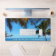 Create a beach ocean view scene getaway at your desk, work station or craft area with this desk mat featuring a full-bleed photo of a tropical beach with palm trees overlooking the ocean or replace with your photo or image. Personalize with a name, monogram, saying, quote or other custom text or delete the sample text to leave blank. ASSISTANCE: For help with design modification or personalization, contact the designer BEFORE ORDERING via the Zazzle Chat MESSAGE tab below or email makeitaboutyoustore@gmail.com.