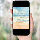 A wedding invitation for a beach wedding, destination wedding. A watercolored sandy beach, ocean waves and a blue sky as background.