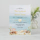 Perfect for tropical destination weddings or any summer beach and coastal themed wedding, these elegant invitations feature a blue watercolor ocean background, with seashells on the beach at the bottom, and REAL GOLD FOIL for text accents.