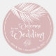 Beach Palm Leaf Dusty Rose Wedding Welcome Classic Round Sticker