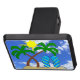 Show off your love for the beach with this custom-made trailer hitch cover. This cover features blue sky, palm trees, sad and flip flops.