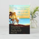 Beach Palm Trees and Ocean Sunset Destination Wedding invitations. Use this template to customize your own personalized beach wedding invitations or beach party event invites. Includes blue, aqua, yellow, orange, bronze and black colours for the perfect summer beach wedding.
