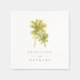 Ces serviettes tropicales mariages sont décorées d'une aquarelle représentant deux palmiers, jumelée à une typographie chic.