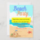 Invite your friends and family to your beach party! The invitation features a beach, sand castle, umbrella, and starfish.
