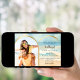 On front: Add your own vertical size photo. Watercolored beach and waves as background, black text. Personalize and add your names and details.