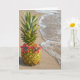 Tropical pineapple on beach sand with star sunglasses for friend's birthday.