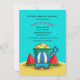 A juvenile beach party invitation with a bright blue background, sand toys and slices of watermelon. All you need for a fun day at the beach. (<a href='https://www.freepik.com/free-vector/hello-summer-background-with-beach-elements_2141603.htm'>Designed by Freepik</a>). <br/><br/>The card is easy to customize with your wording, font, font colour, paper shape options and choice of six paper types.<br/><br/>Not exactly what you're looking for? All our products can be custom designed to meet your needs at no extra charge.<br/><br/>Simply contact us at heartfelthelper@gmail.com.<br/><br/>Coordinating products available: Just ask us!