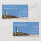 Smart two side beach real estate business cards template that includes a lighthouse image, beach waves and text colour, layout and style you can customize. Designed as a business card template for a beach theme Realtor, Broker, agent or agency.