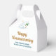 This cute tropical real estate company housewarming gift box features a modern blue beach house with a cool coastal palm tree and island sun. Customize these marketing favour boxes with your agent and realty business name for a realtor along the coast.