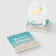 Create a personalized, custom-printed low quantity stone coasters for your beach vacation rental property featuring a deep turquoise teal blue ocean sand beach surf and modern, retro typography that you can use to check-in guests at your coastal rental house, condo, room, apartment, or give away as guest merch keepsakes.