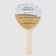 Beach wedding double-sided fan program. Golden beach sand and white surf image is the background for black calligraphy printed text with templates on both sides. Buy as a kit which comes with sticks and glue dots and assemble yourself, or pay extra to receive them already made.