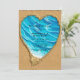 Design features a printed coloured blue aqua beach water and heart shape made from sand, calligraphy script or type writing. Great for your wedding celebrations!
