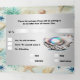 This chic, elegant and stylish budget-friendly invite has beautiful watercolor pastel coloured starfish in a light beige set against a pale blue background that has ocean stars in blue scattered around the sea molluscs. A beautiful 3D realistic looking iridescent shiny shell with a round pearl inside is placed strategically against the cut off faux silver rsvp panel that has black templates on it for your personalized wording. The middle section has a faux silver frame for the couples colour photo and the front cover has the couples names. This unique and tres chic design is ideal for under the sea; coral reef; tropical island; coastal destination and nautical theme weddings.