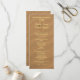 Tall, beach sand wedding program. Customize on both sides of long paper with light yellow text over brown sand image. Include the place of wedding, names of the wedding party, and a "thank you" note to guests.