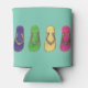 Graphic illustration of pattern of colourful beach sandals. Stay cool and in style with this summer design can cooler.
